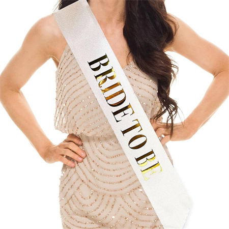 Beyaz Üzeri Altın Büyük Bride To Be Yazılı Simli Işıltılı Kuşak Kemer, bekarlığa veda partinizde göz alıcı ve şık bir görünüm elde etmek isteyen gelin adayları için mükemmel bir seçimdir. Bu kemer, simli ve ışıltılı tasarımı ile tüm dikkatleri üzerinize çekerken, büyük "Bride To Be" yazısı ile partinin yıldızı olduğunuzu da açıkça gösterir.