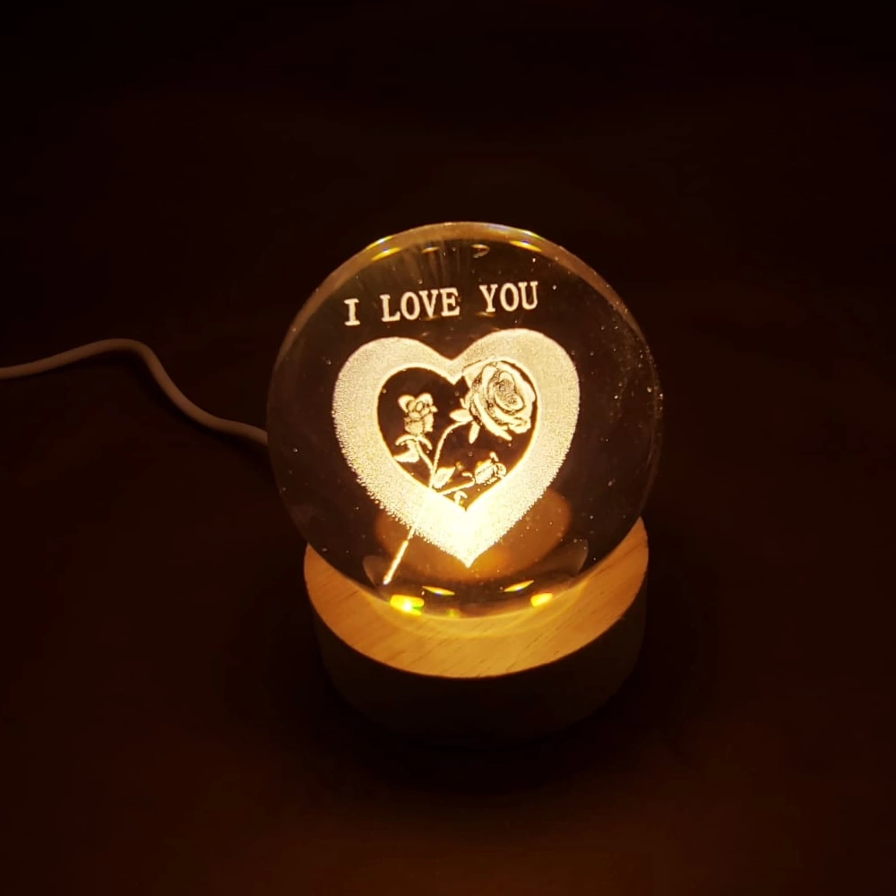 Çalışma masanıza kitaplığınıza veya tv ünitenize koyabileceğiniz I Love You Temalı Usb'li Ahşap Altlıklı Cam Küre.