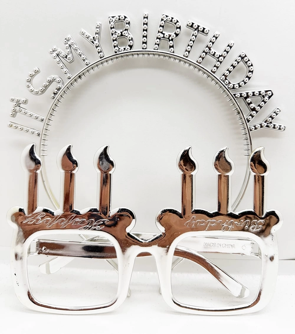 İt's My Birthday Yazılı Taç ve Mum Şekilli Gözlük Seti Gümüş Renk, doğum günü partileri ve diğer özel günler için mükemmel bir aksesuardır. Taç ve gözlük plastikten yapılmış ve gümüş rengindedir. Taçta "It's My Birthday" yazmaktadır ve gözlükler mum şeklindedir.