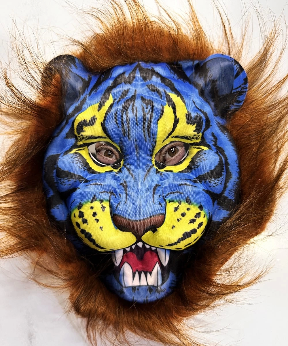Eva malzemesi sayesinde bu maske oldukça dayanıklıdır. Uzun yıllar boyunca kullanabilirsiniz. Kahverengi Yeleli Saçlı Mavi Yüzlü Kurt Kaplan Maskesi Mega Peluş Maskesi tasarımı ise maskeye sevimli ve eğlenceli bir görünüm kazandırır.
