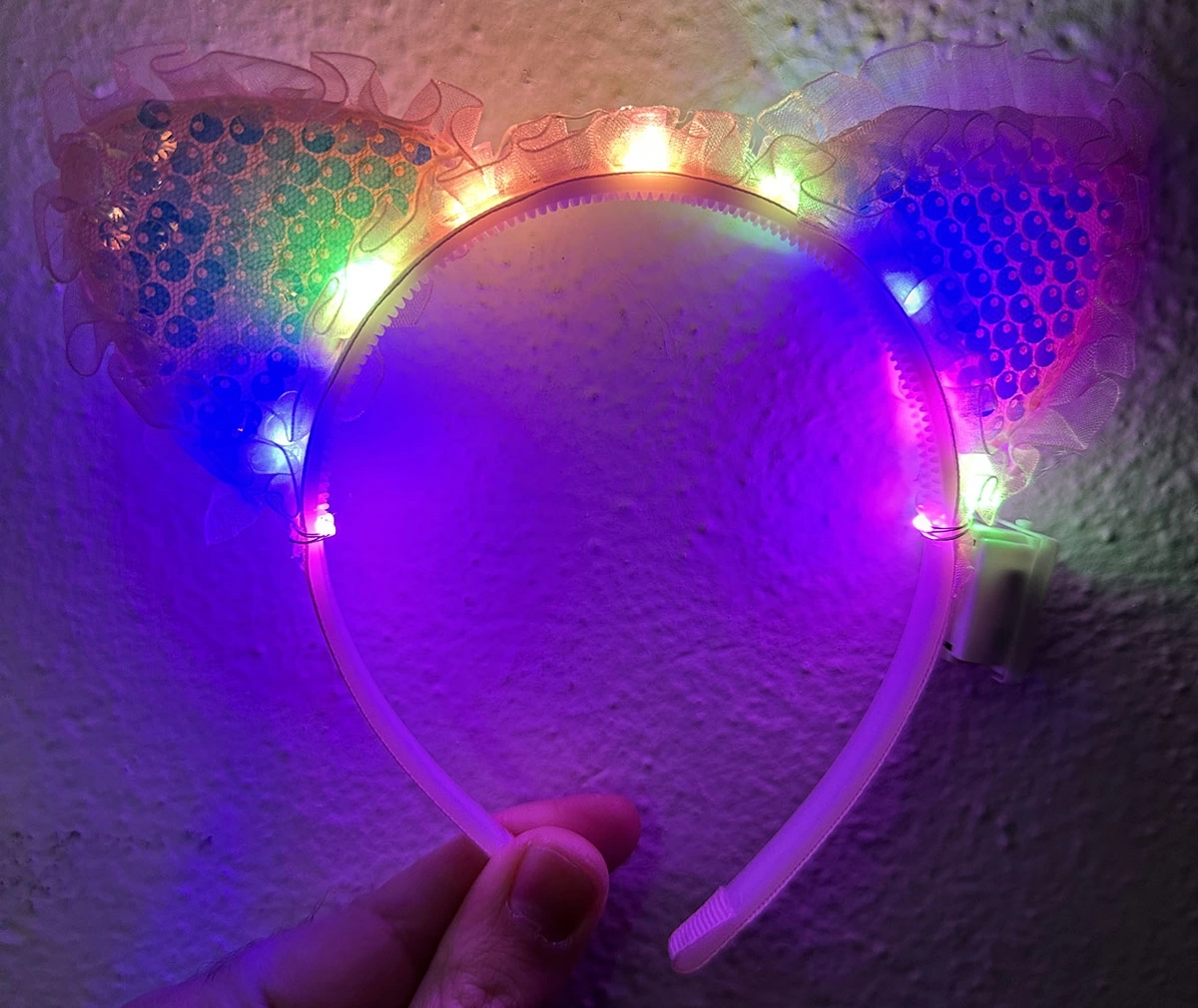 Kenarları Dantelli Pembe Pullu Payetli Led Işıklı Kedi Kulak Taç ile: