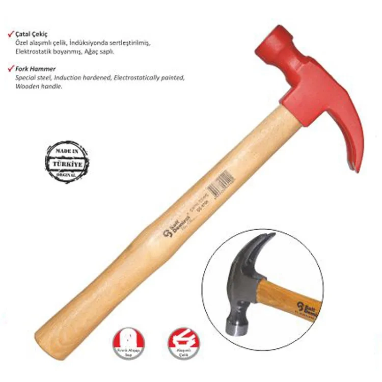 • Polisajlı Çatal Çekiç: Özel alaşımlı çelikten üretilmiş, indüksiyonla sertleştirilmiş ve elektrostatik boyalı sağlam bir yapıya sahiptir. Ergonomik tasarımı sayesinde uzun süreli kullanımda bile yorulmadan çalışmanızı sağlar. Ahşap sapı sayesinde titreşimi azaltır ve konforlu bir kullanım deneyimi sunar. Polisajlı yüzeyi sayesinde paslanmaya karşı dayanıklıdır ve uzun ömürlü kullanım sağlar.