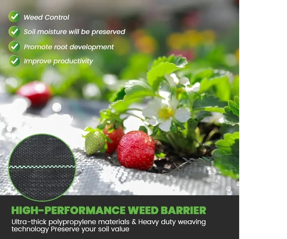 Bizim benzersiz bahçe yabani otları matları hava ve suyun geçmesine izin vermek için tasarlanmıştır, böylece toprak nemini korur ve mükemmel yabani ot kontrolü sağlar